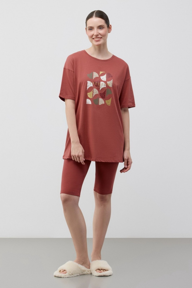 Е 20239/терракотовый , пижама женская (футболка, шорты)