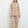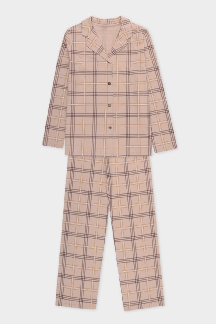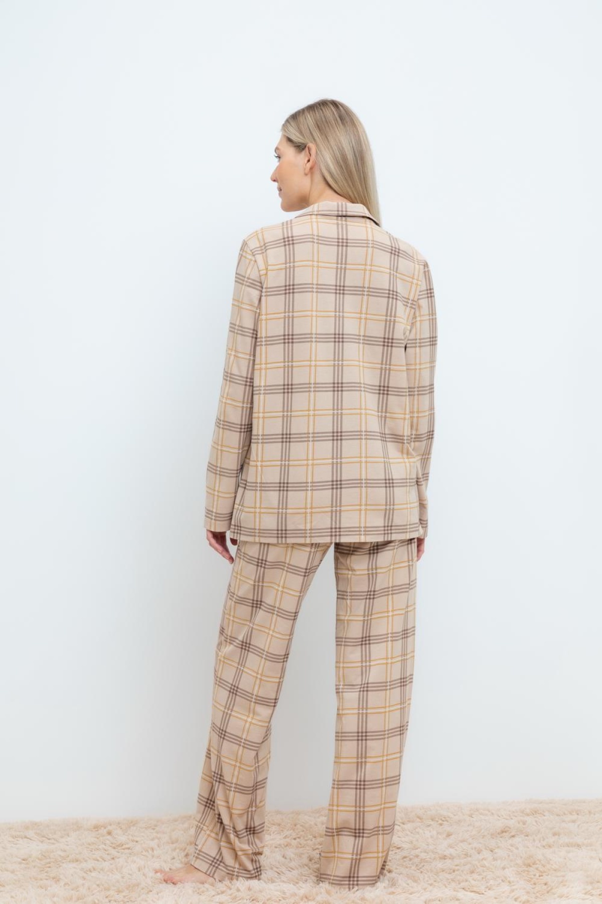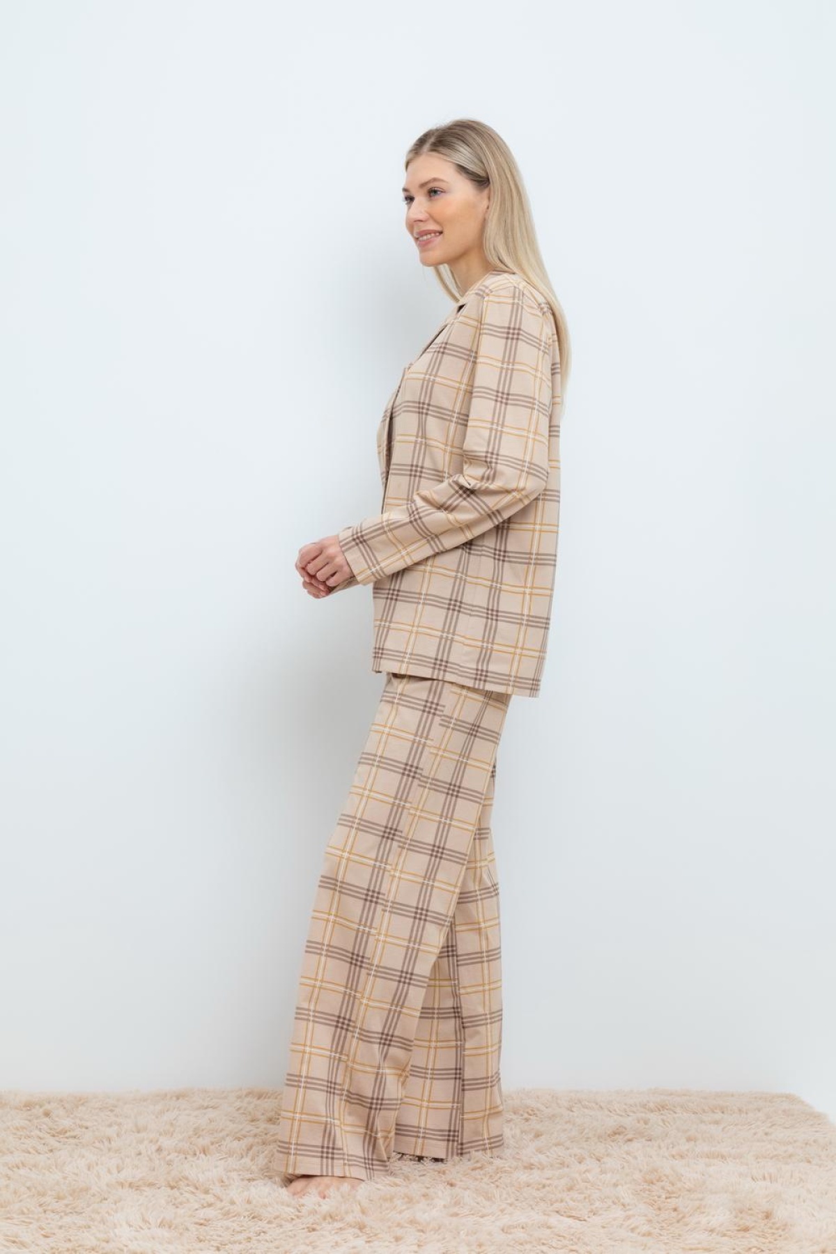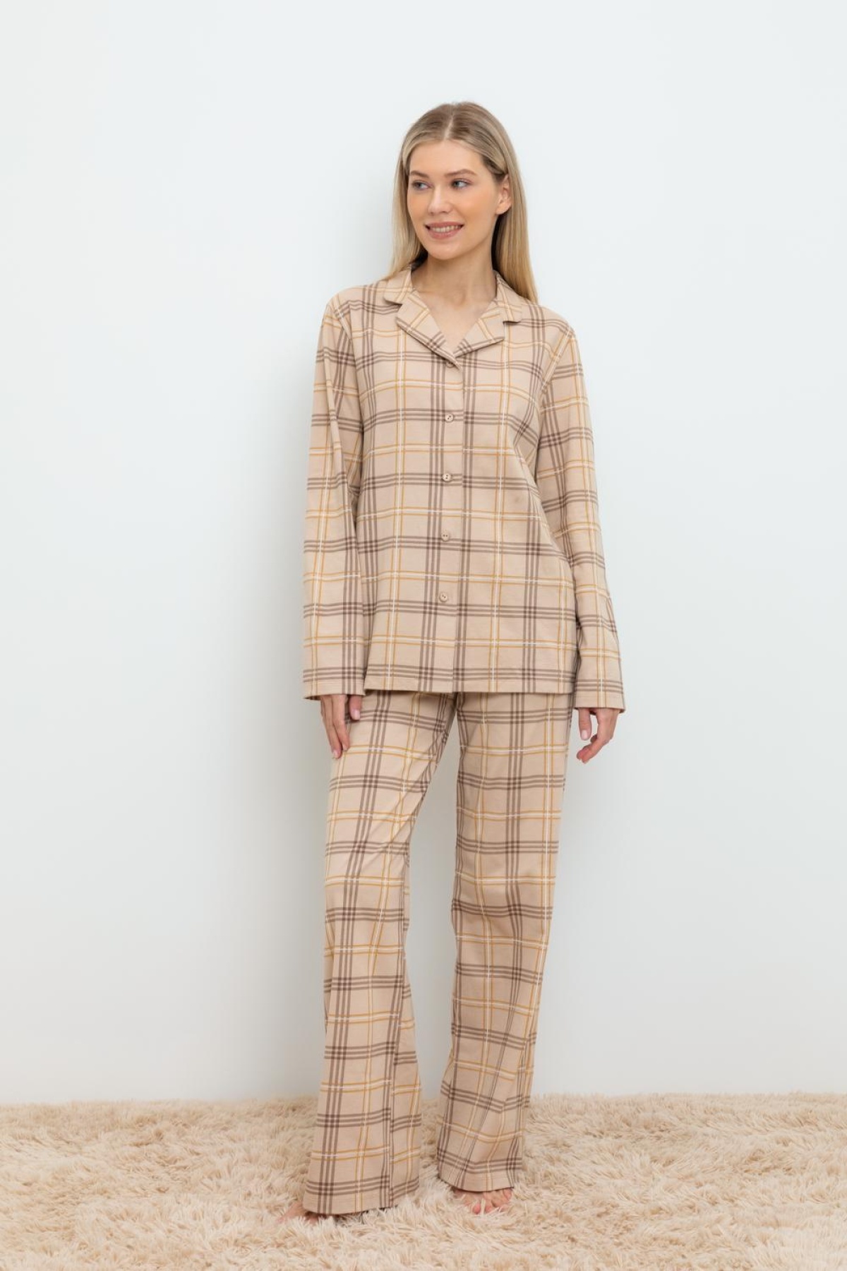 ЕП 20168/бежевый,текстильная клетка пижама (рубашка ночная,брюки)