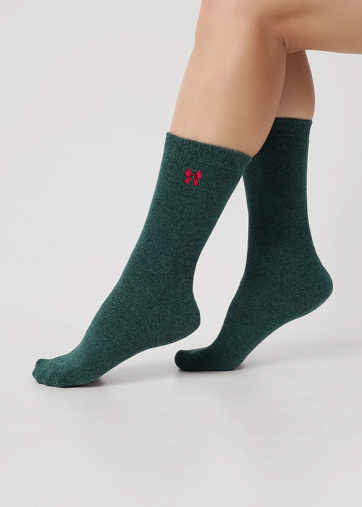 Д955С Носки жен. НГ вышивка синель ЗЕЛЁНЫЙ