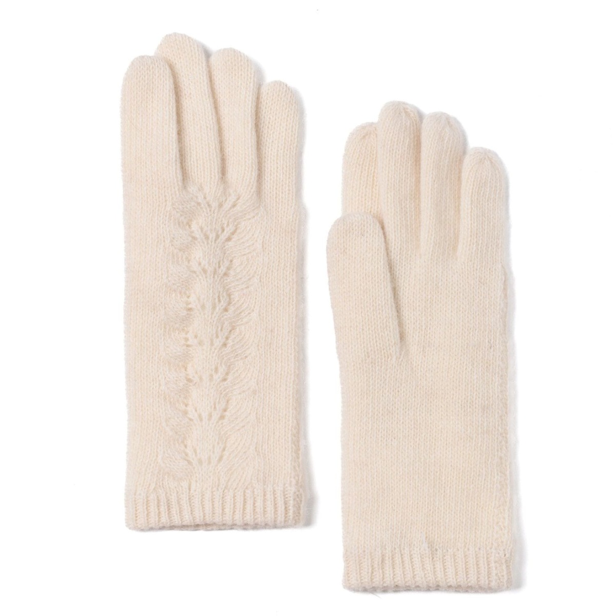 Вязаные женские перчатки итальянского бренда FABRETTI в теплом белом оттенке выполнены из натуральной шерсти с добавлением ангоры и нейлона. Лицевая сторона декорирована орнаментом из кос. На манжетах двойная резинка для комфортной посадки по руке и дополнительной защиты от ветра. Перчатки плотно облегают руку, обладают мягкой, слегка пушистой фактурой, отлично сохраняют тепло. Вязаные перчатки – классический выбор на зимний сезон. Они будут идеально смотреться с куртками, пуховиками и пальто.