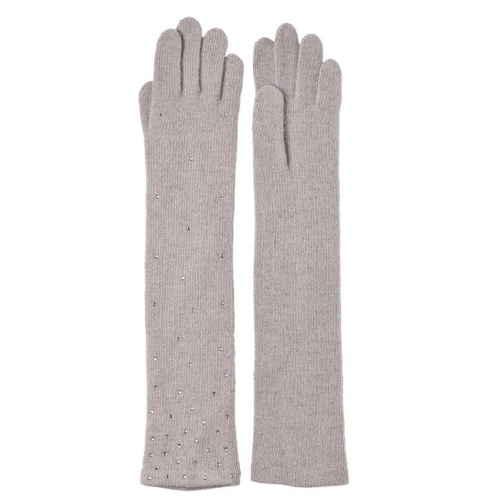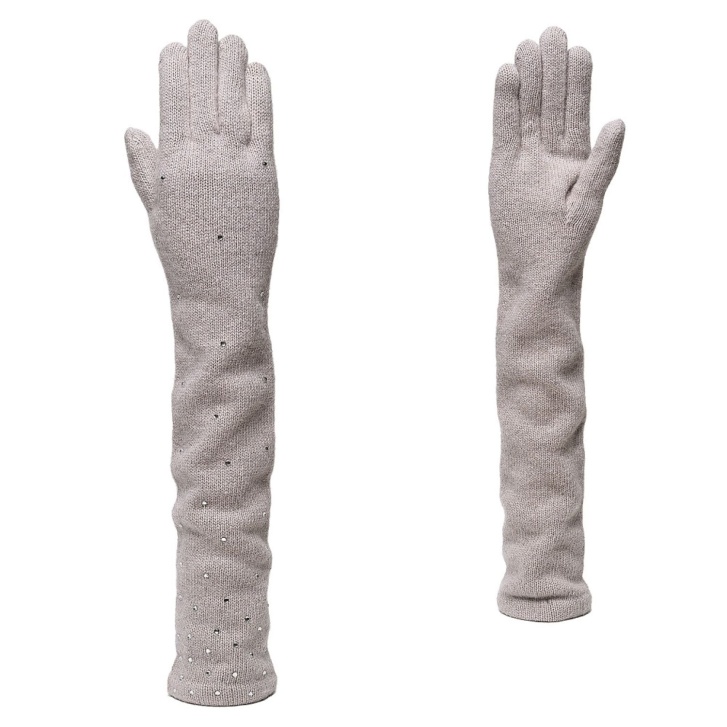 Удлиненные женские вязаные перчатки итальянского бренда FABRETTI светло-серого цвета из натуральной шерсти с добавлением нежной ангоры и эластана. Украшены блестящими термо стразами на лицевой стороне. Шерстяные вязаные перчатки – наилучший выбор для морозной зимы и межсезонья. Длинные модель прекрасно дополнят верхнюю одежду с широкими рукавами.