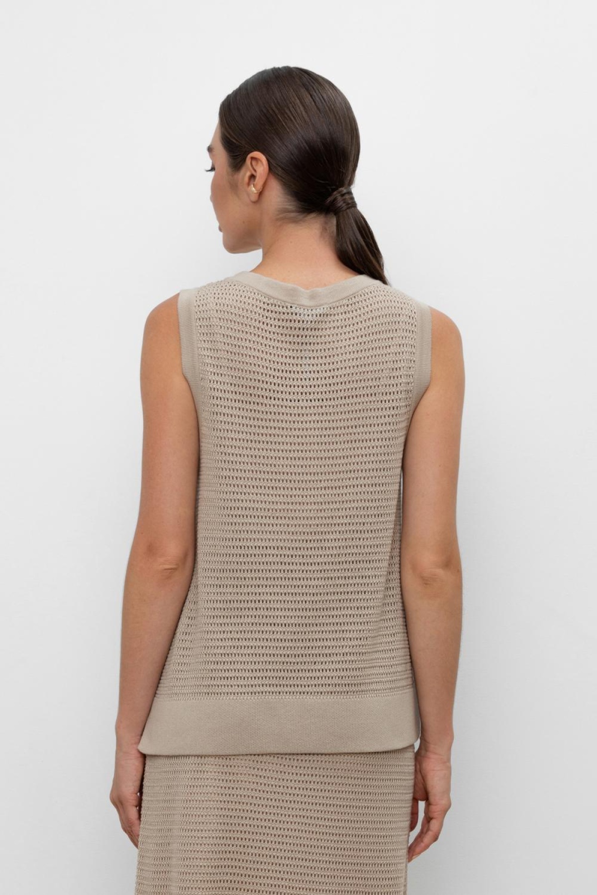 Вязаная ажурная майка. Состав 50% хлопок, 50% акрил. Благодаря акрилу в составе изделие не пилингуется.