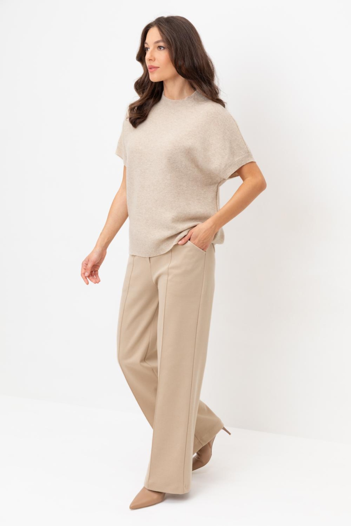 Брюки прямого кроя со стрелкой и боковыми карманами из плотного гладкого трикотажа интерлок. Пояс на резинке обеспечивает комфортную посадку. Все трикотажные изделия производятся в соответствии с нормами Швейцарского сертификата ЭкоТекс. Сделано в России